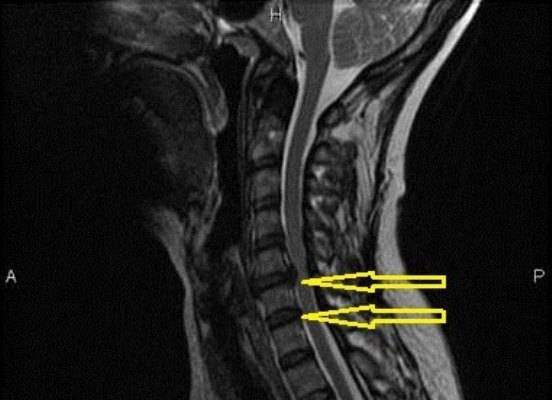 Опасное осложнение грыжи шейного диска — миелопатия. Оно развивается, когда грыжевое образование выходит в спинальный канал. Внутреннее пространство канала сужается, и вещество спинного мозга сдавливается.